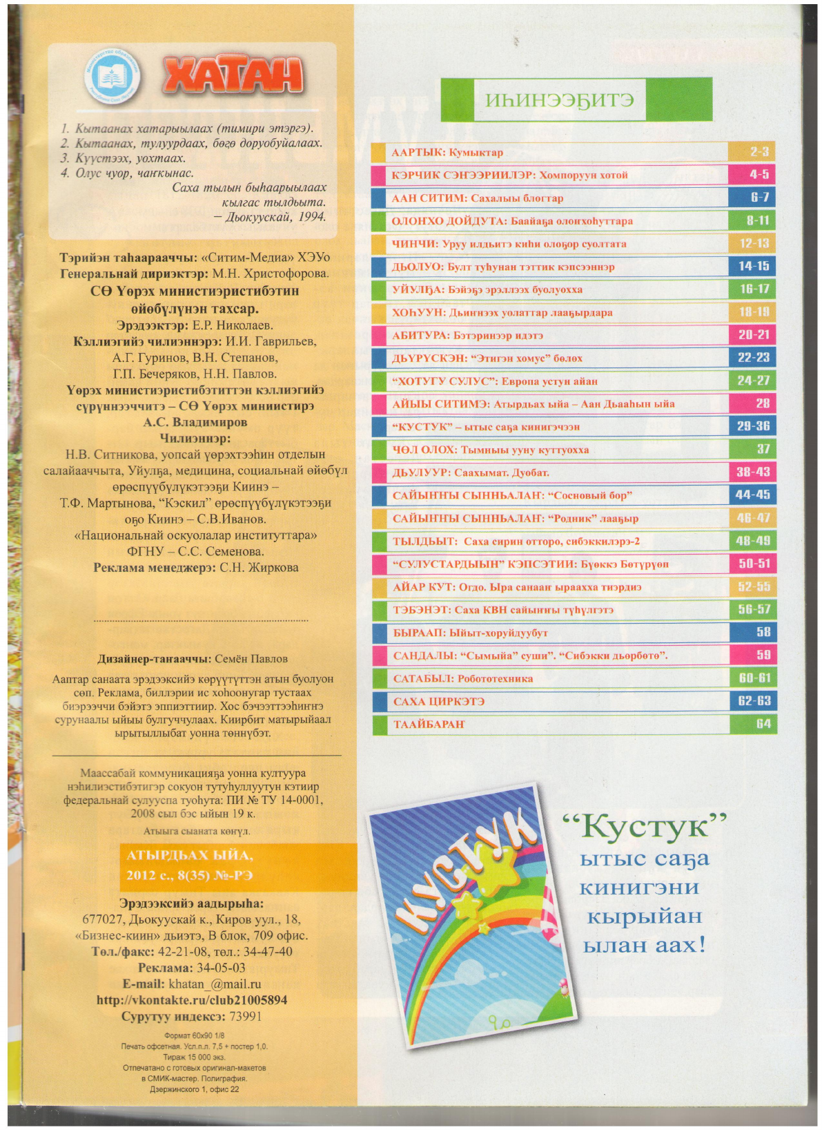 - 8. Хатан: ыччат сайдам сурунаала, 2012, №1 (28) (Тохсунньу)
