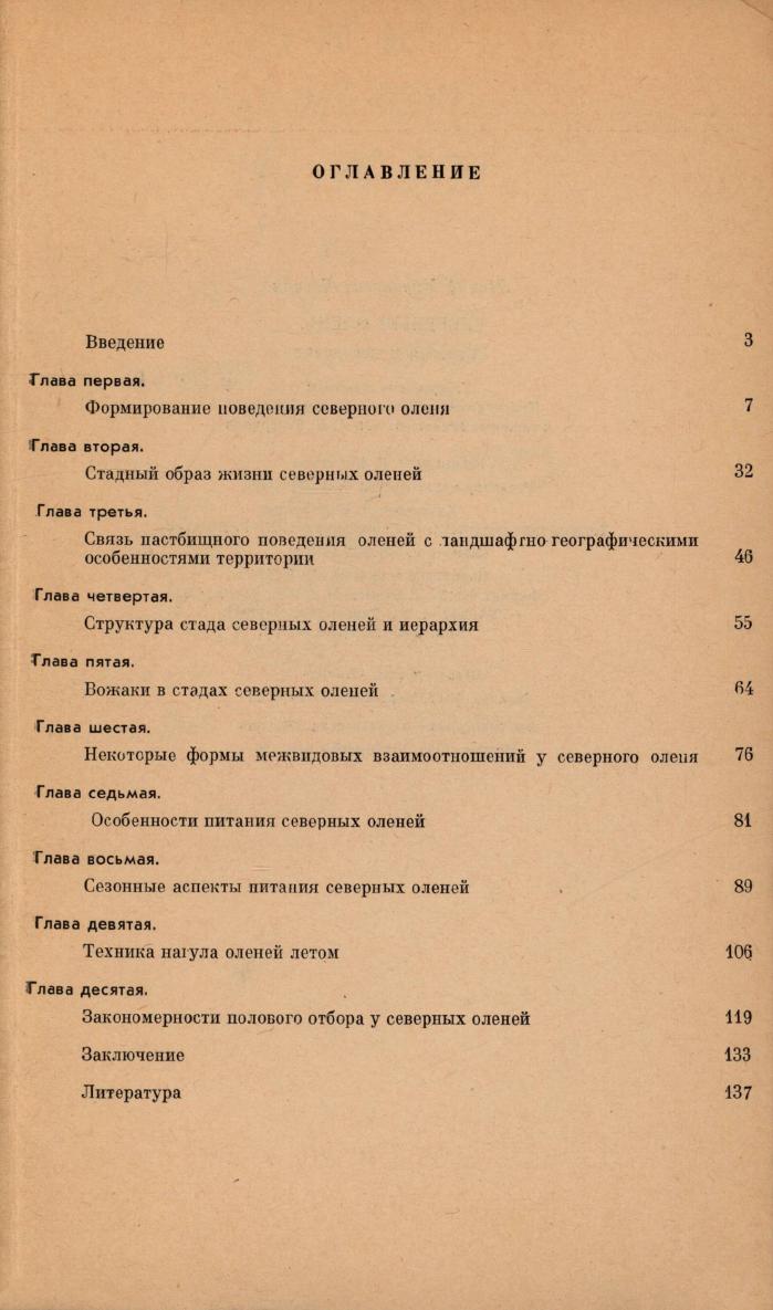 Монография посвящена поведению и экологии северных оленей. Наибольшее внимание уделено стадным формам поведения, знание которых позволяет человеку использовать оленей как домашних животных. Автор показывает взаимоотношение оленей между собой в стаде