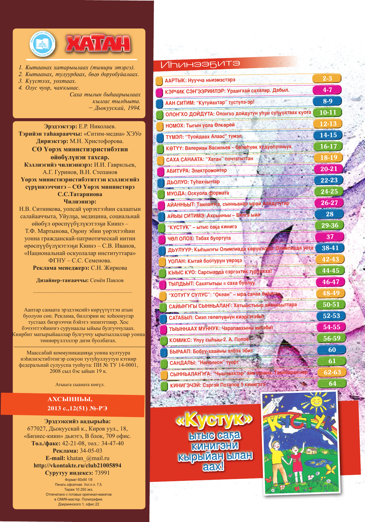 - 13. Хатан: ыччат сайдам сурунаала, 2013, №2 (41) (Олунньу)