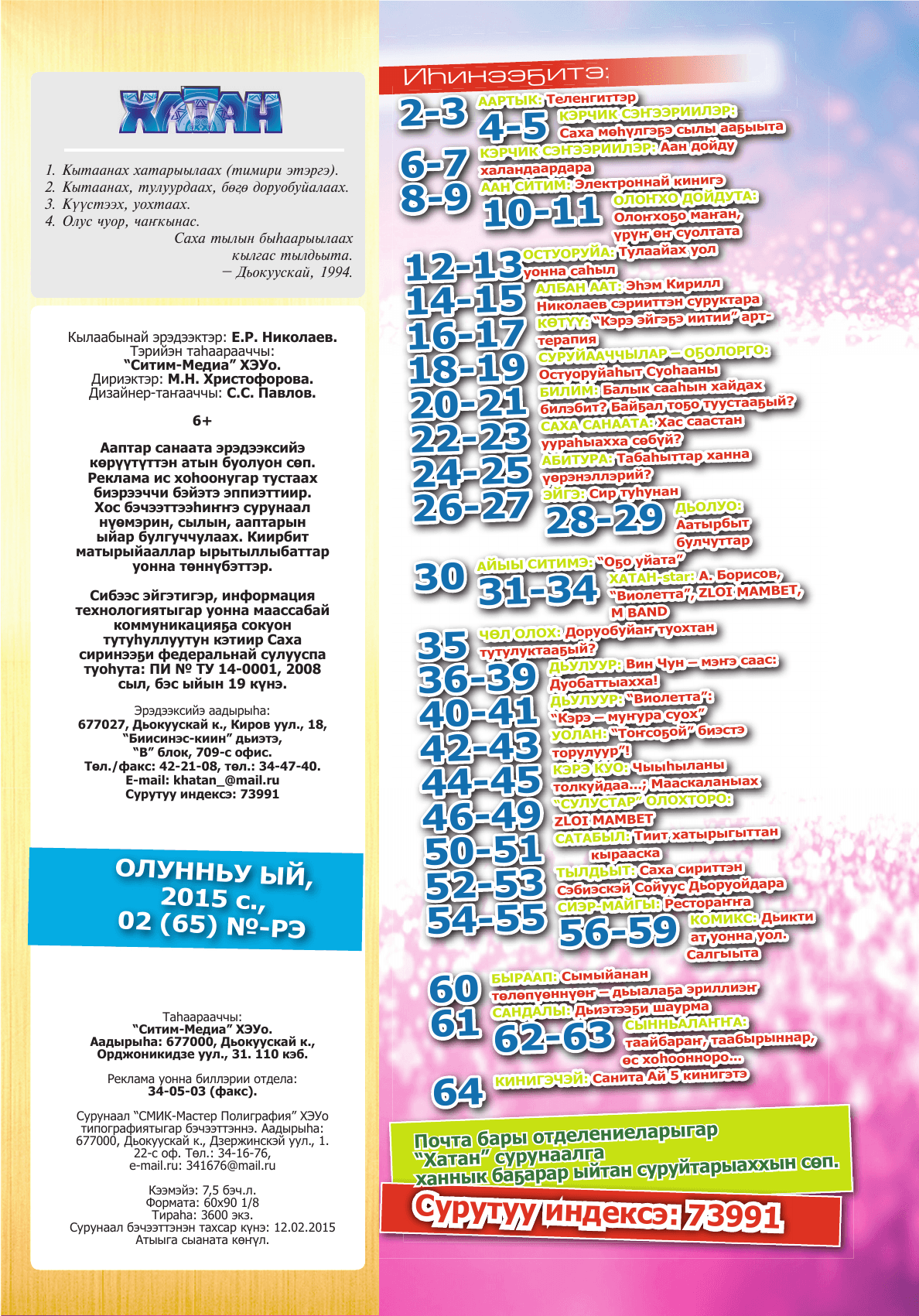- 3. Хатан: ыччат сайдам сурунаала, 2015, №1 (64) (Тохсунньу)