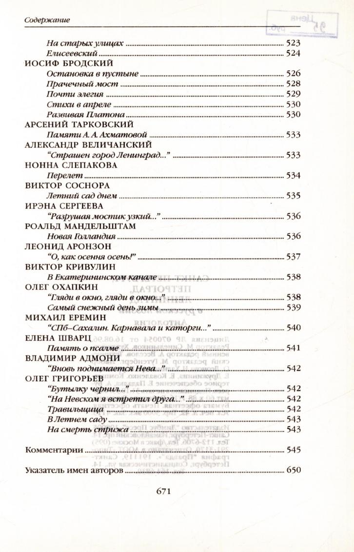 Санкт-Петербург, Петроград, Ленинград в русской поэзии : антология ; [составитель, предисловие, комментарии М. Синельникова]. - Санкт-Петербург : Лимбус Пресс, 1999. - 671 с.