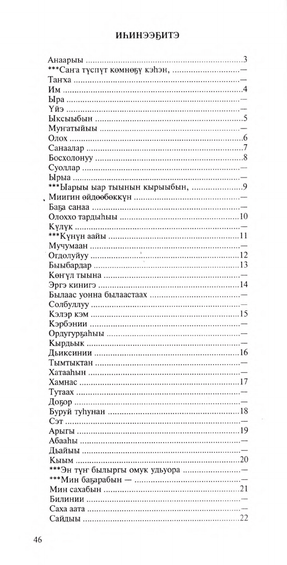 Автор бу кинигэҕэ киирбит хоһоонноро, ырыалара олох араас хайысхатын көрдөрөллөр