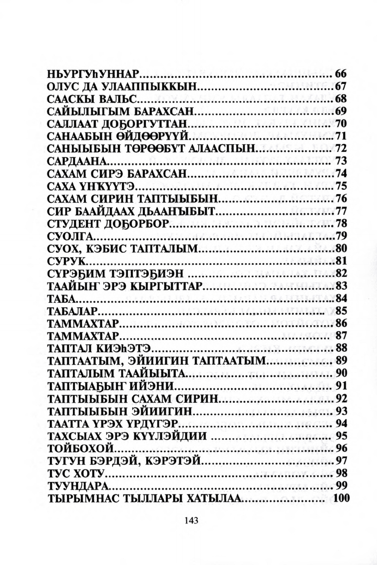 Тохтоллор көмүс дорҕооннор... : ырыанньык : (ностальжи) / [хомуйан оҥордо Г. Т. Степанов]. - Дьокуускай : [и. с.], 2010. - 147 с.