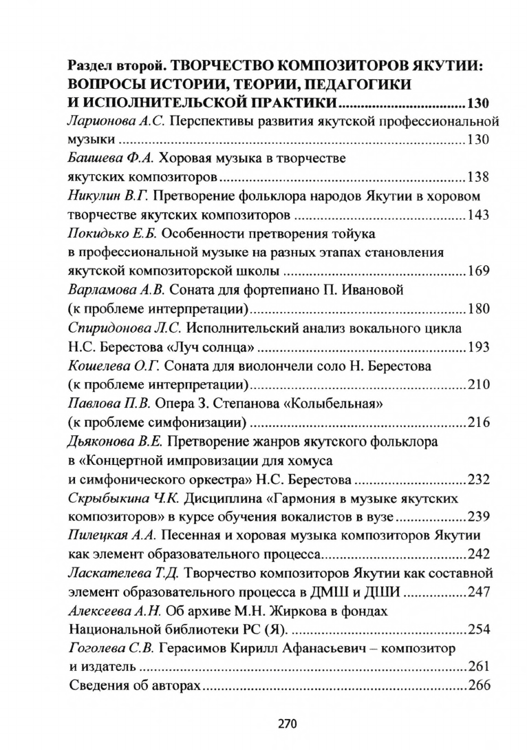 Творчество композиторов Якутии в контексте развития национальных композиторских школ : материалы Всероссийской научной конференции, г. Якутск, 25 апреля 2008 г. / [составитель, ответственный редактор Т. В. Павлова-Борисова]. - Якутск : Изд-во ЯГУ, 2009. - 270 с.