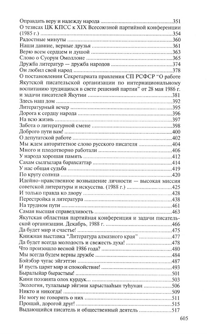 Бу томҥа народнай суруйааччы саха литературатын, саха суруйааччыларын, республика дьонун-сэргэтин үлэтин-хамнаһын тустарынан эппит этиилэрэ, оҥорбут дакылааттара, интервьюлара түмүлүннүлэр