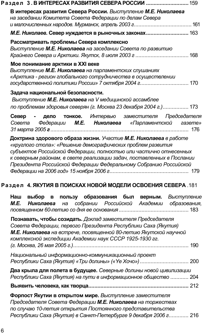 Предлагаемая книга представляет собой не просто сборник публикаций, выступлений, докладов известного государственного деятеля, первого президента Республики Саха (Якутия), заместителя председателя Совета Федерации Михаила Ефимовича Николаева во время его визитов в страны циркумполярного мира и поездок по северным регионам нашей страны. Это концептуальные размышления о внешних и внутренних проблемах российского Севера и Арктики. Тему развития Арктики и регионов Приполярья, как политик и исследователь, М. Е. Николаев разрабатывает всю жизнь, посвящая ей свои книги, статьи, доклады. В настоящем издании в хронологическом порядке публикуются материалы, относящиеся к парламентскому периоду деятельности М. Е. Николаева как одного из руководителей Совета Федерации