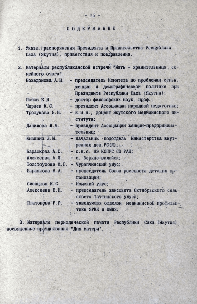 День матери: сборник материалов, посвященных первому празднованию "Дня Матери" в Республике Саха (Якутия) 14-17 октября 1993 г.
