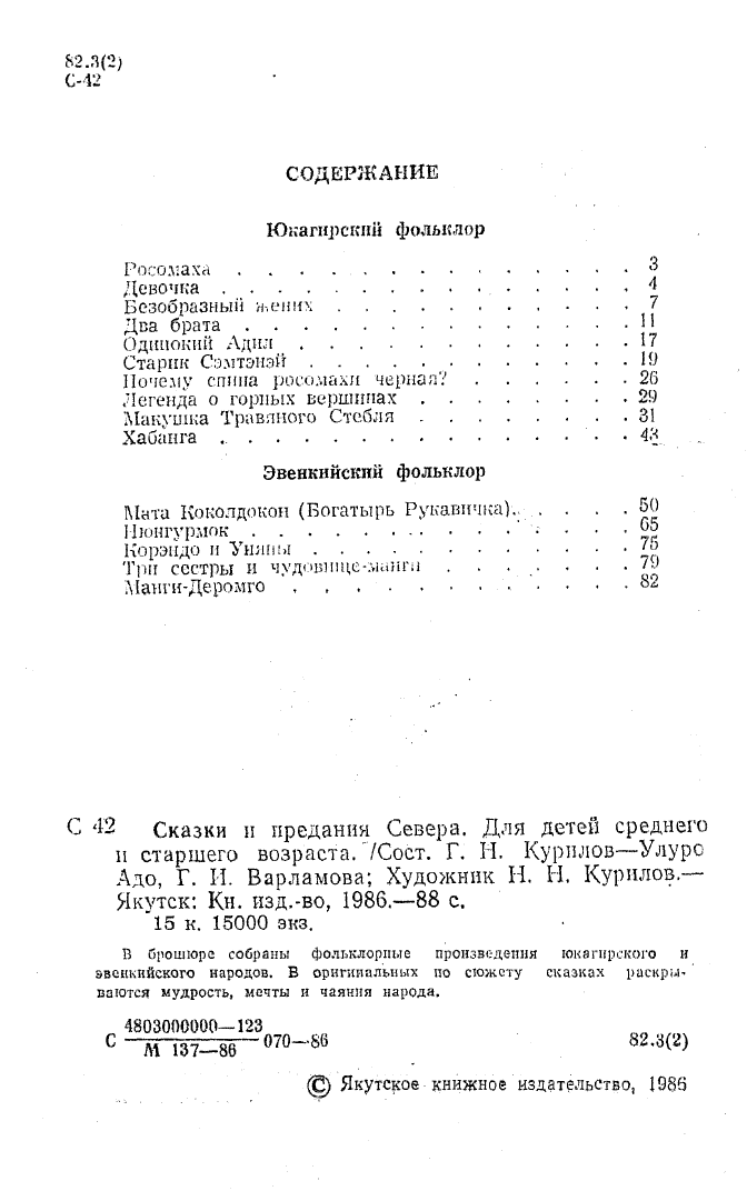 Сказки и предания Севера : Для сред. и ст.шк. возраста / Худож. Н. Н. Курилов. - Якутск : Кн. изд-во, 1986. - 87 с.