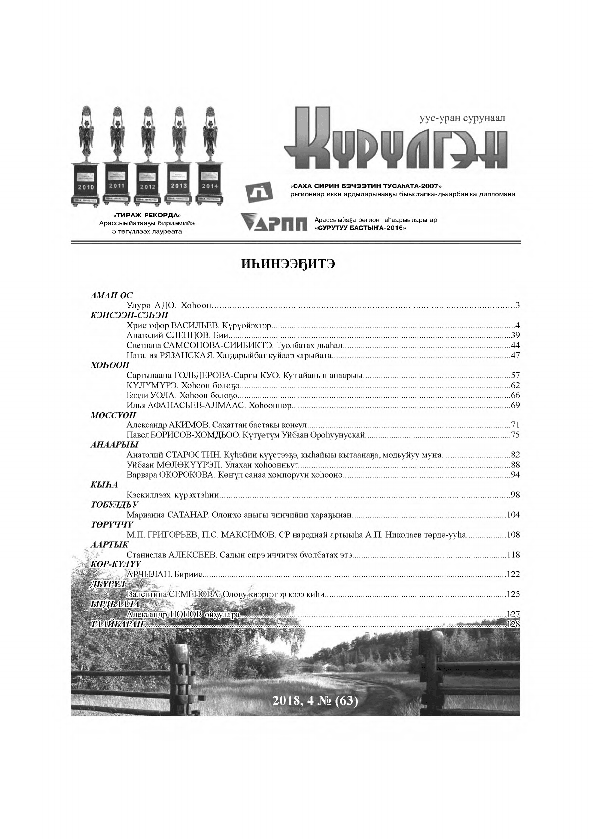 Күрүлгэн : уус-уран сурунаал / [ред. А. Г. Гуринов]. - Дьокуускай : Ситим Медиа, 2006 -.
