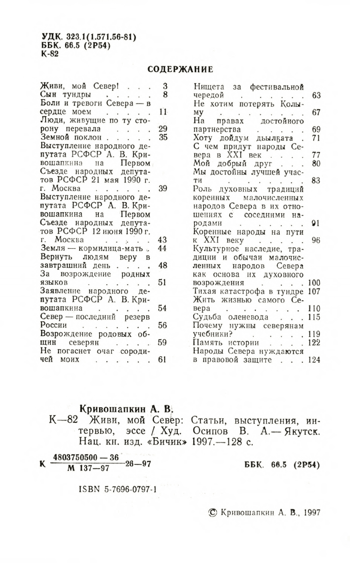 Живи, мой Север : Статьи, выступления, интервью, эссе. - Якутск : Бичик, 1997. - 128 с.