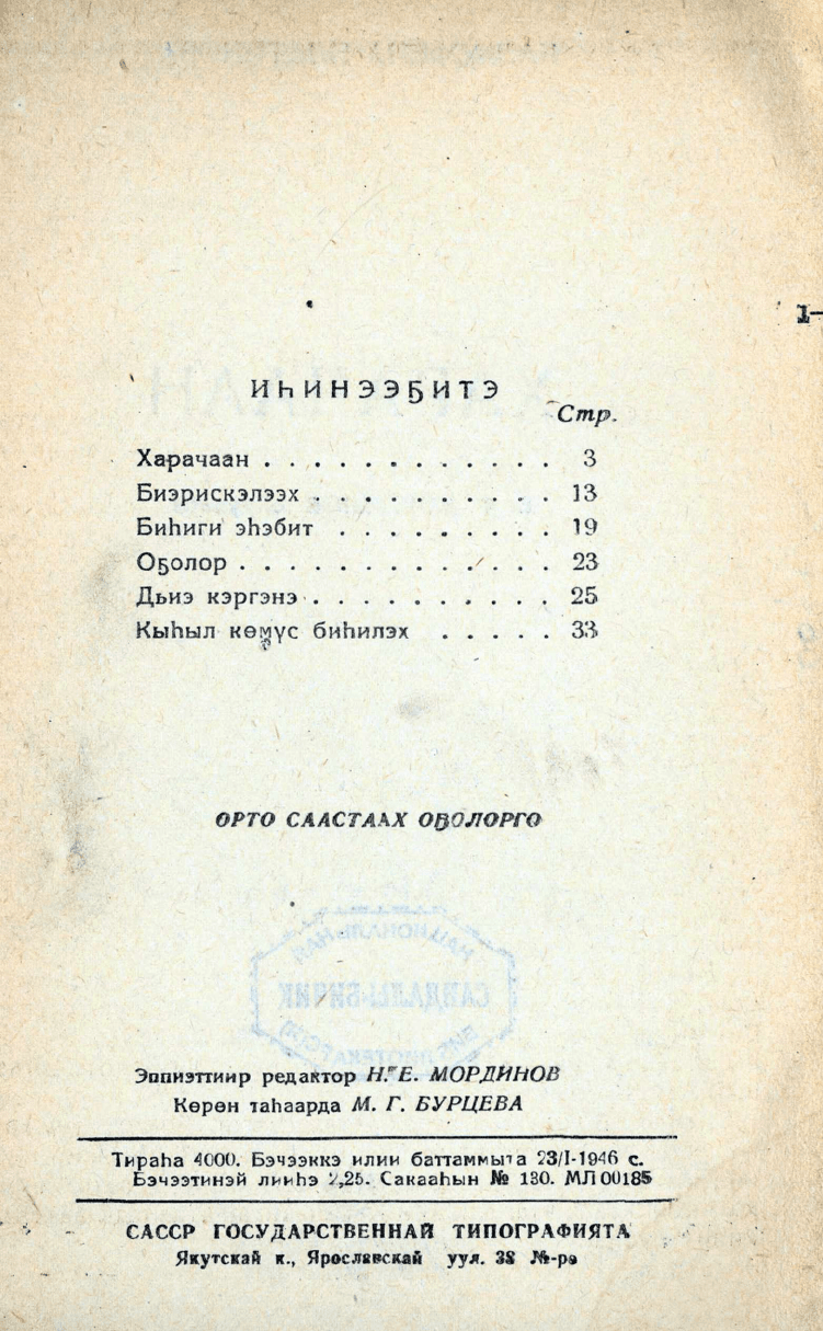 Якутскай : САССР госиздата, 1945. - 37, [1] с.