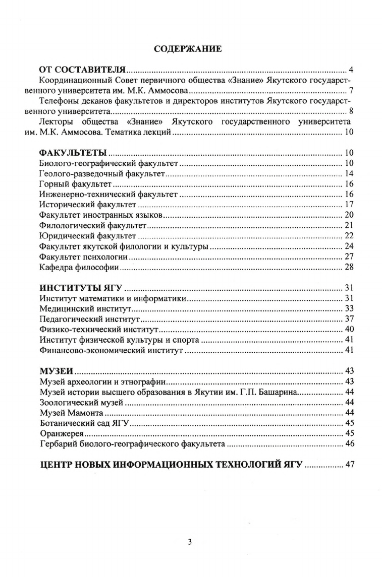 Лекторы общества "Знание" Якутского государственного университета им. М. К. Аммосова : тематика лекций : информационный бюллетень / Министерство образования и науки Российской Федерации, Якутский государственный университет им. М. К. Аммосова, Саха (Якутское) Республиканское общество "Знание" Российской Федерации ; [составитель Угаров Г. С. ; ответственный редактор Иванова К. И.]. - Якутск : Издательство ЯГУ, 2004. - 46, [1] с.