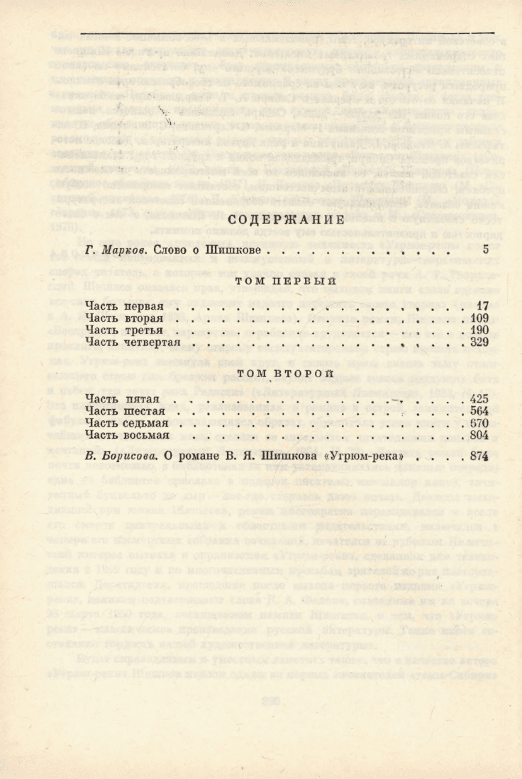 "Угрюм-река" (1933) - широкое историческое полотно жизни дореволюционной Сибири. Сам В. Я. Шишков (1873 -1945) считал этот роман основным в своей творческой биографии: «...«Угрюм-река» -та вещь, ради которой я родился». Описание неповторимой красоты сибирской природы, яркие, самобытные образы, острый, динамичный сюжет захватывают читателя. Автор повествует о предпринимательской деятельности семьи Громовых, прослеживает на ее примере тенденцию вырождения класса капиталистов, показывает обострение классовой борьбы на сибирских приисках