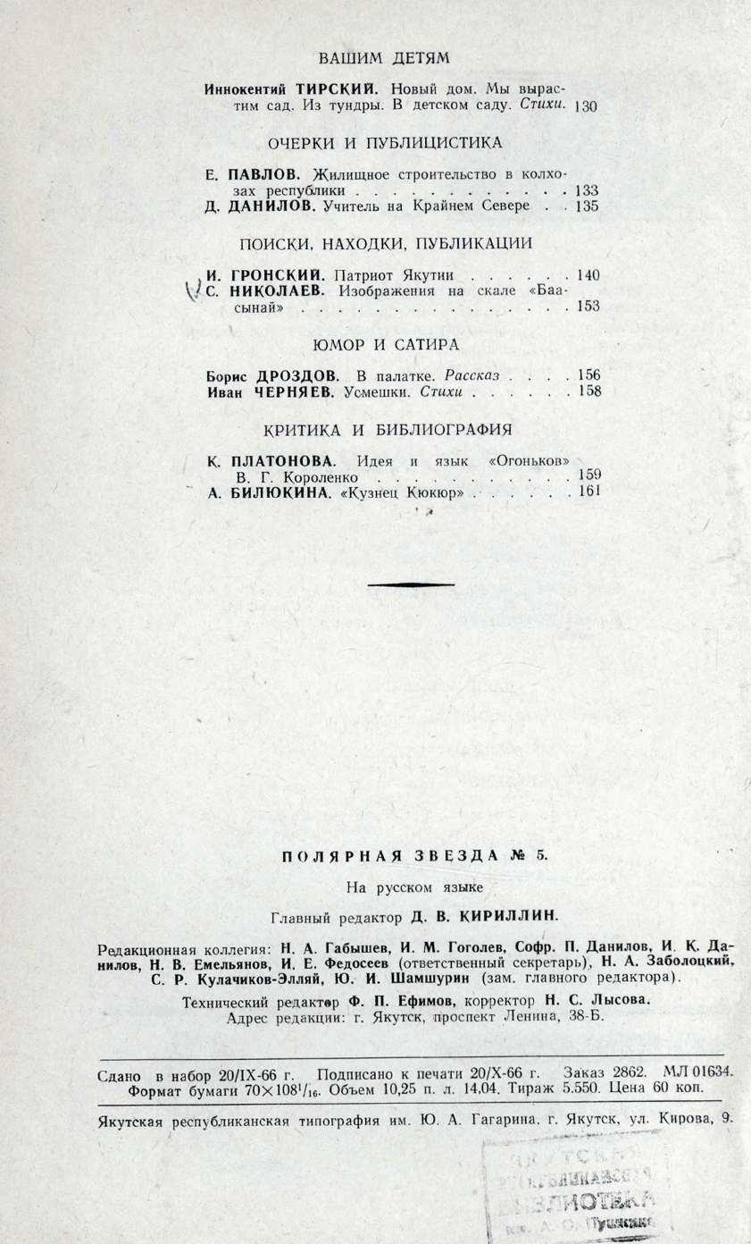 - Периодические издания Якутии (конец XIX – XXI вв.) > Журналы > Полярная звезда > 1966,