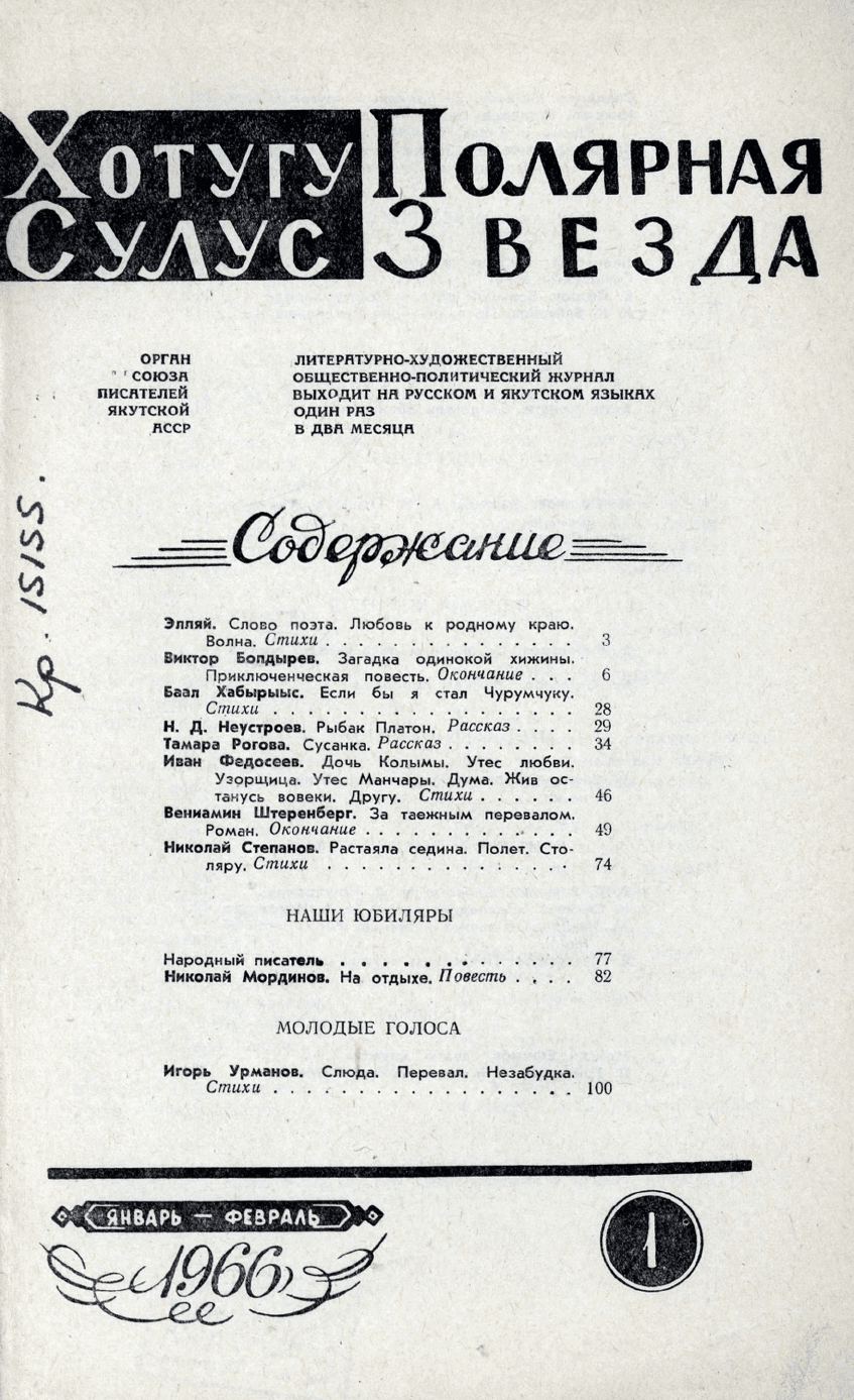 - Периодические издания Якутии (конец XIX – XXI вв.) > Журналы > Полярная звезда > 1966,