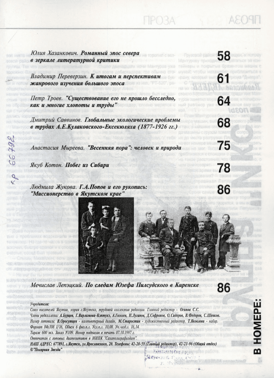 - Периодические издания Якутии (конец XIX – XXI вв.) > Журналы > Полярная звезда > 1997,