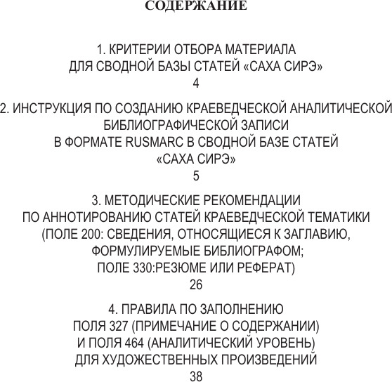 Создание краеведческой аналитической библиографической записи в формате RUSMARC : (методические материалы) / Национальная библиотека Республики Саха (Якутия), Центр обеспечения информационными ресурсами, Отдел национальной библиографии ; составитель Е. В. Хосоева ; редакторы: Т. С. Максимова, Л. Г. Федорова. - Электронные текстовые данные (1 файл: 3,29 Кб). - Якутск : РИЦ НБ РС(Я), 2020. - 39, [1] с.