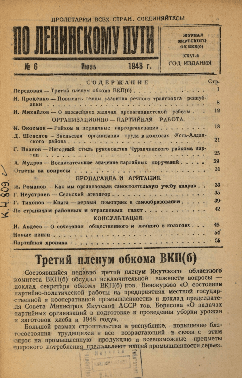 По Ленинскому пути : журнал Обкома ВКП(б) / . - Якутск, 1922-1964