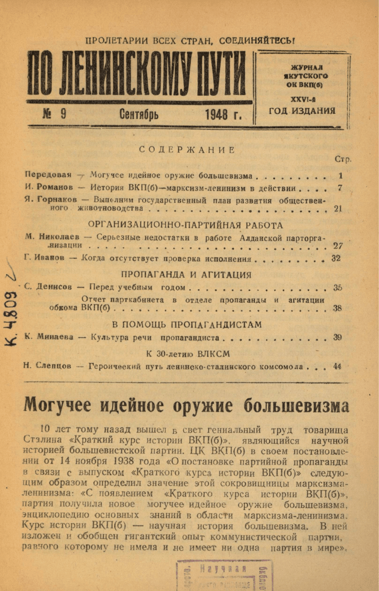 - 9. По Ленинскому пути, 1948, №10 (октябрь)