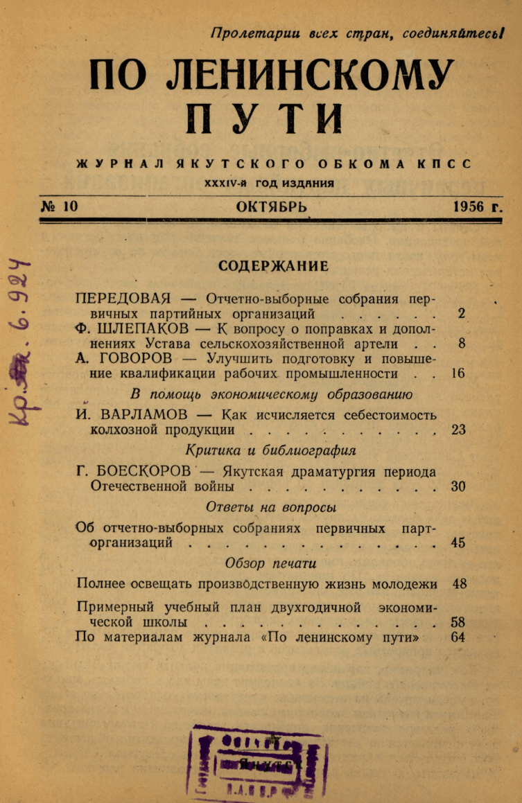 - 1. По Ленинскому пути, 1956, №1 (январь)