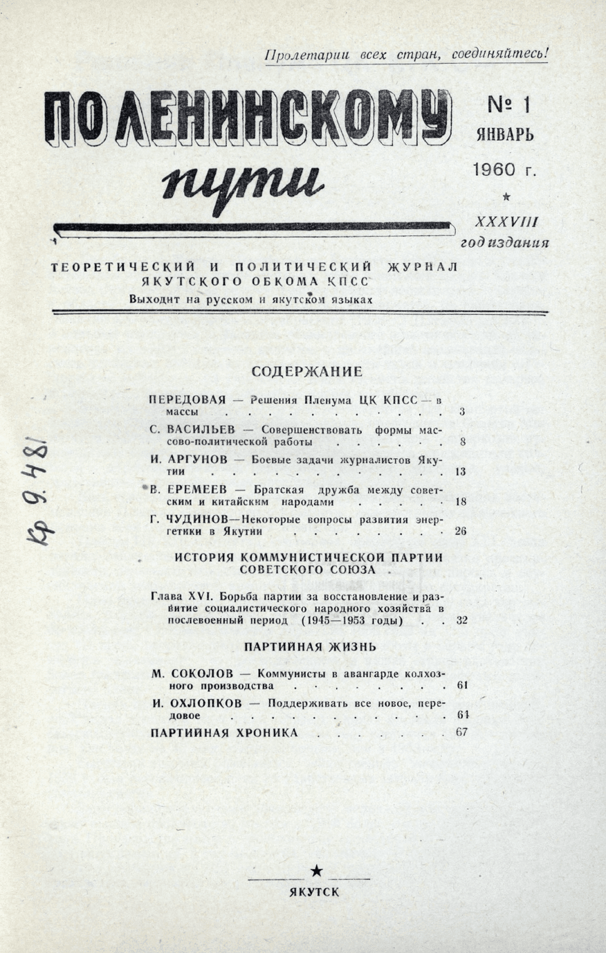 По Ленинскому пути : журнал Обкома ВКП(б) / . - Якутск : , 1922-1964.