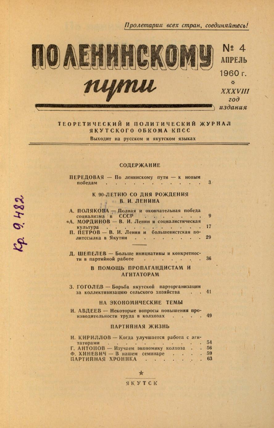 - 1. По Ленинскому пути, 1960, №1 (январь)
