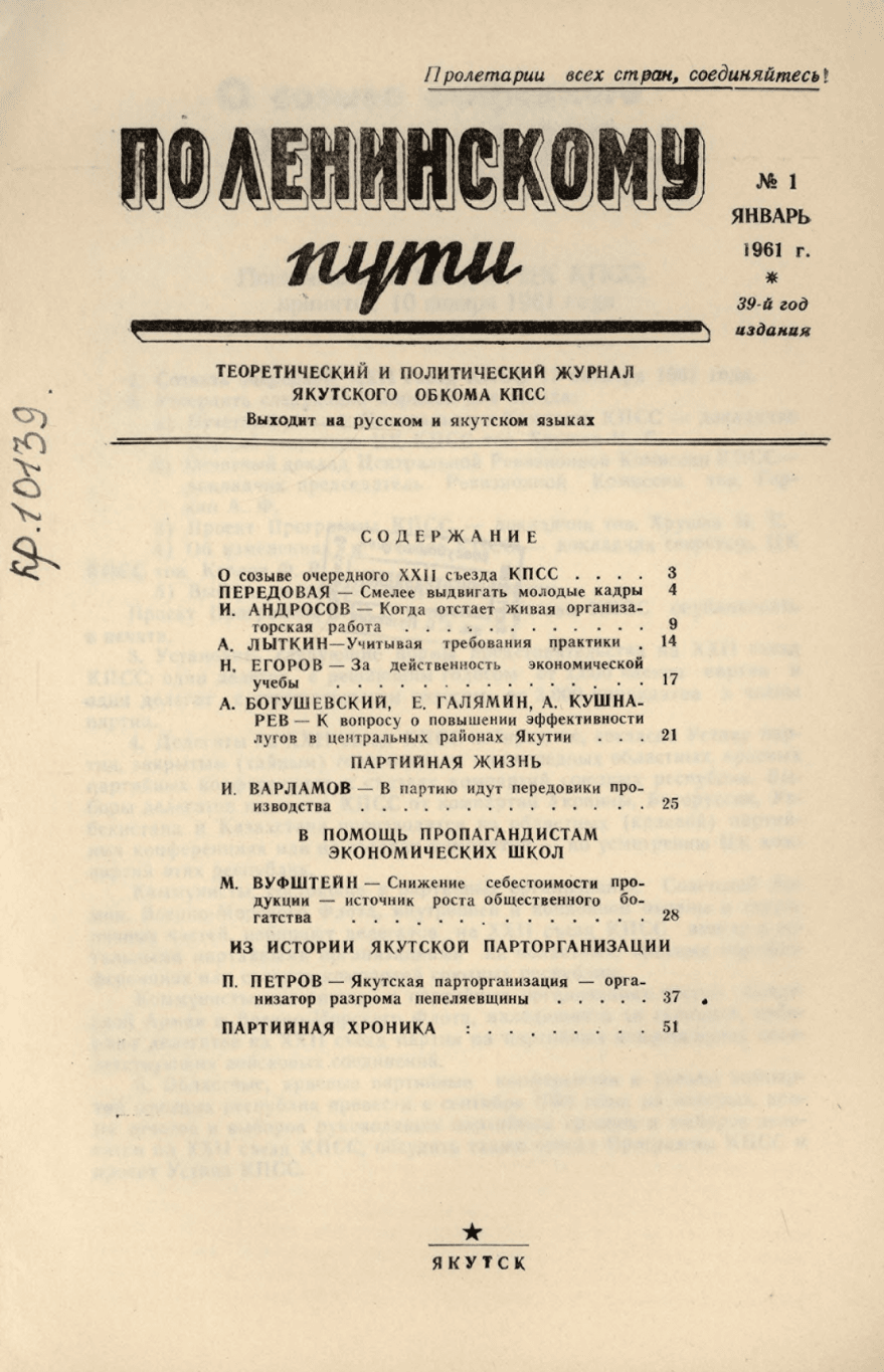 По Ленинскому пути : журнал Обкома ВКП(б) / . - Якутск : , 1922-1964.