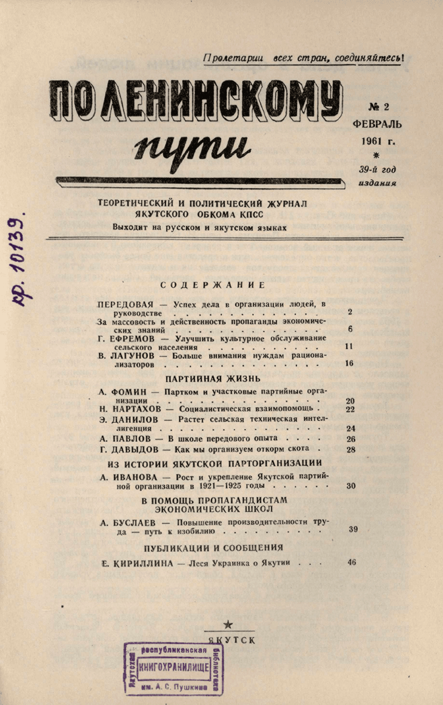 По Ленинскому пути : журнал Обкома ВКП(б) / . - Якутск : , 1922-1964.