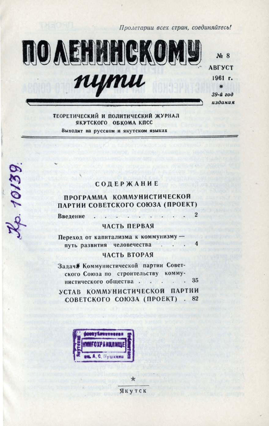 По Ленинскому пути : журнал Обкома ВКП(б) / . - Якутск : , 1922-1964.