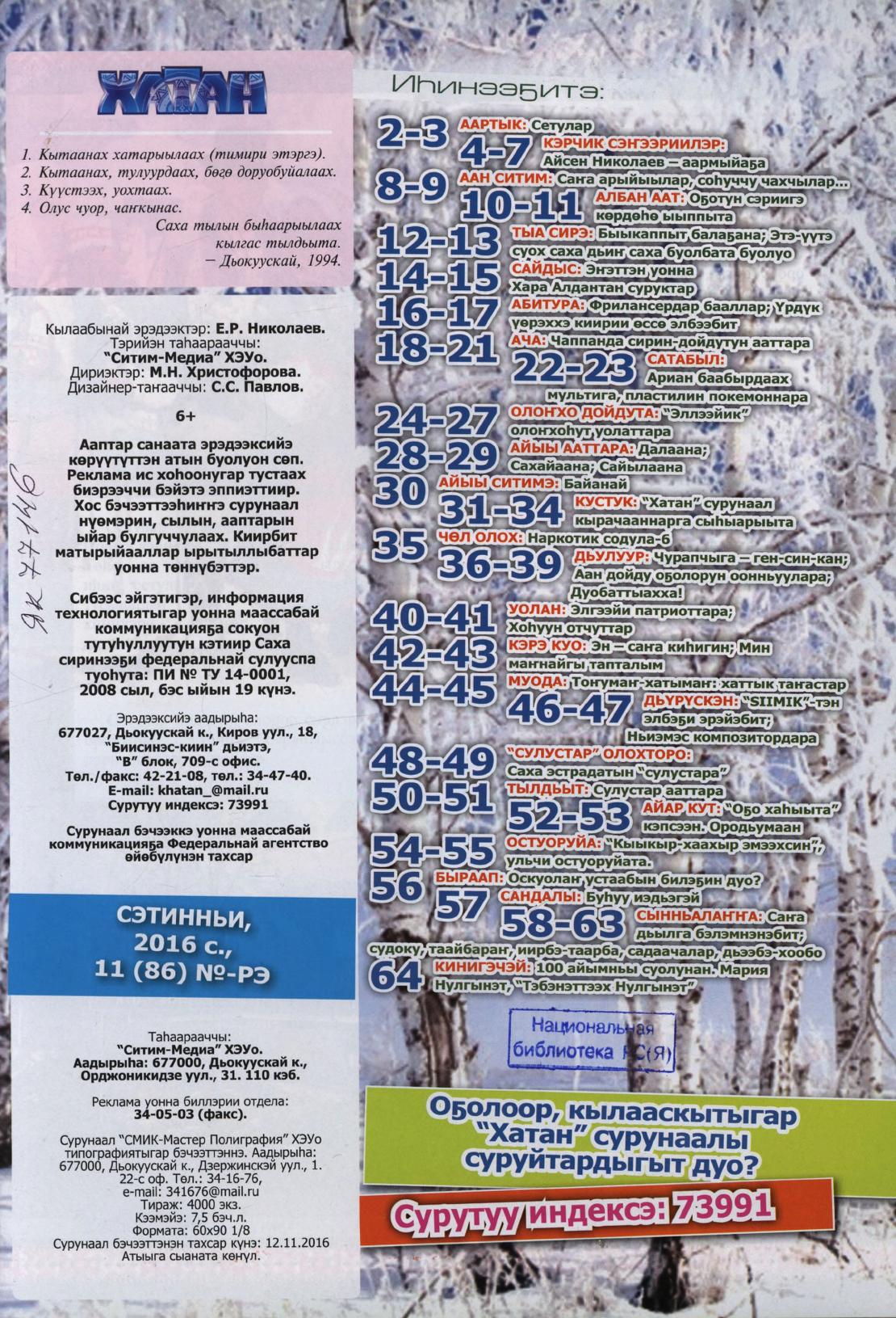 - 11. Хатан: ыччат сайдам сурунаала, 2016, №1 (76) (тохсунньу)