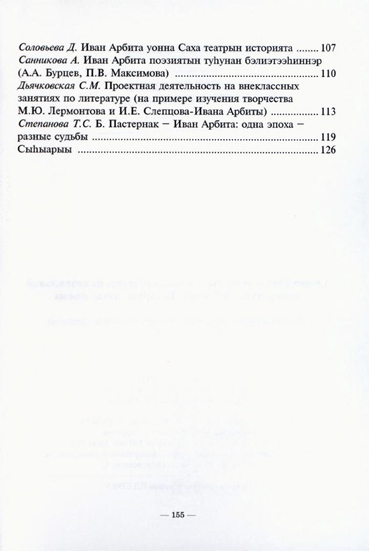 XX үйэ литературатын историятын саҥалыы үөрэтии: Эргиллибит ааттар = Современные аспекты изучения истории национальных литератур XX века: Возвращенные имена : республикатааҕы научнай-практическай конференция матырыйааллара (Дьокуускай к., ахсынньы 19 күнэ, 2013 чс.) / [хомуйан оҥордо Е. А. Архипова]. - Дьокуускай : [ХИФУ издательскэй дьиэтэ], 2015. - 155 с.