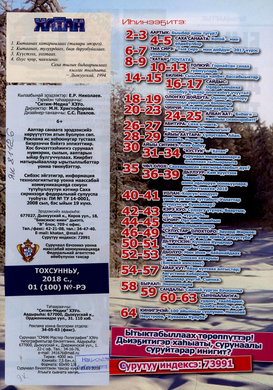 - 16. Хатан: ыччат сайдам сурунаала, 2018, №2 (101) (олунньу)