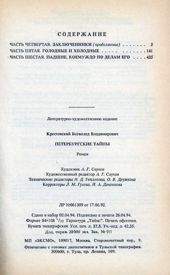Петербургские тайны : роман / Всеволод Крестовский. - Москва : Эксмо, 1994. ISBN 5-85585-089-7. Кн. 2. - 1994. - 715, [2] с.