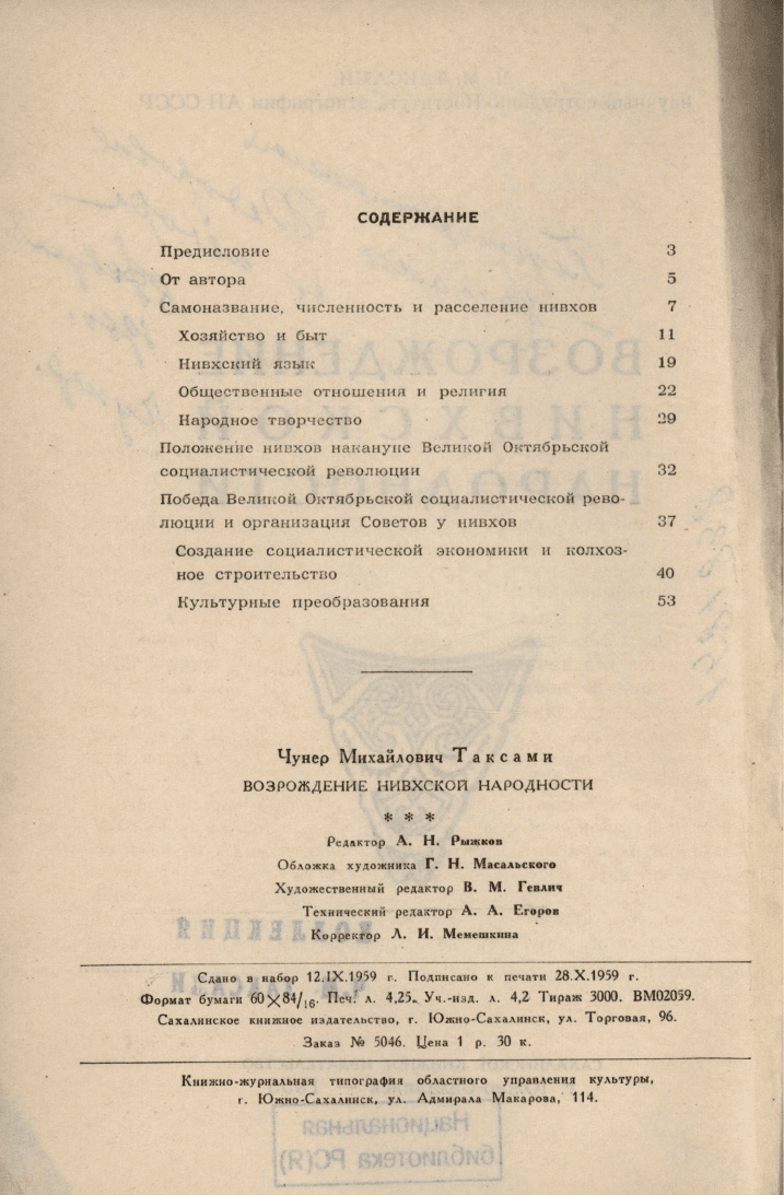 Возрождение нивхской народности / Ч. М. Таксами, науч. сотрудник Ин-та этнографии АН СССР. - Южно-Сахалинск : Сахалинское книжное изд-во, 1959. - 68 с.