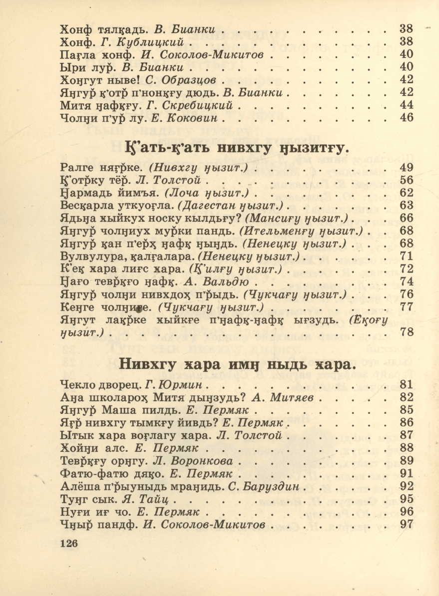 классах нивхских школ (амурский диалект) / Ч. М.