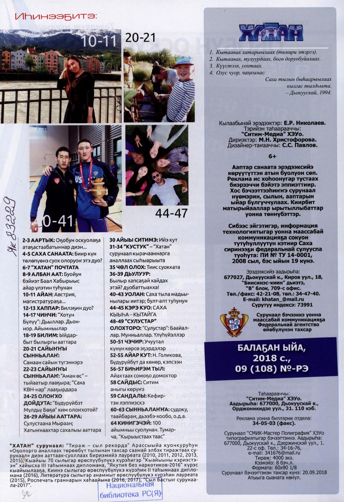 - 17. Хатан: ыччат сайдам сурунаала, 2018, №2 (101) (олунньу)