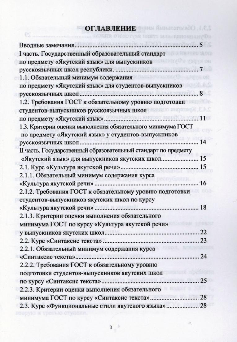 Государственный образовательный стандарт по предмету "Якутский язык" для неязыковых подразделений ЯГУ / Министерство образования и науки РФ, ГОУ ВПО "Якутский государственный университет им. М. К. Аммосова", Факультет якутской филологии и культуры, Кафедра стилистики и перевода ; [авторы-разработчики: преподаватели кафедра стилистики и перевода ФЯФК (заведующая кафедрой, доцент, кандидат филологических наук Васильева С. П.)]. - Якутск : Издательство ЯГУ, 2010. - 40 с.