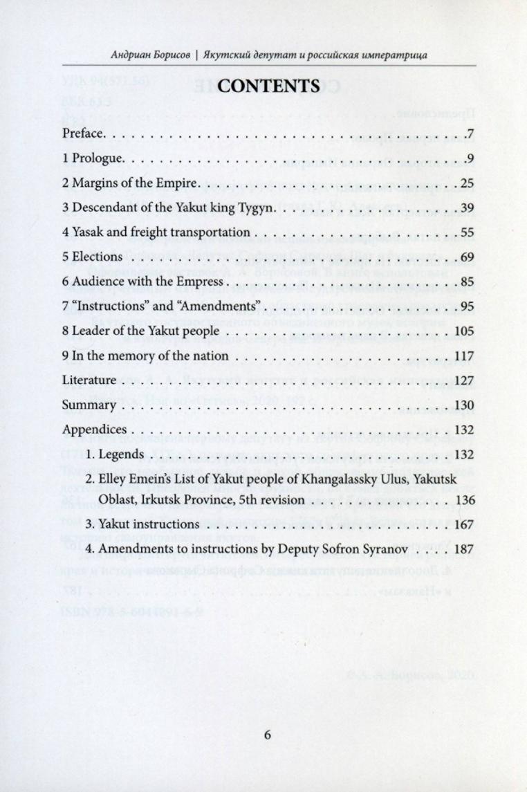 Книга посвящена первому депутату из якутов Софрону Сыранову (1719 - начало XIX в.), потомку якутского средневекового правителя Тыгына, его необычной судьбе и яркой общественно-политической деятельности. Преодолев многие трудности, он сумел добиться после личной встречи с императрицей Екатериной II принятия его депутатом знаменитой Уложенной комиссии 1767-1774 гг. Велик его вклад в историю самоуправления якутов. Для широкого круга читателей, интересующихся историей родного края и исторической судьбой его выдающихся личностей