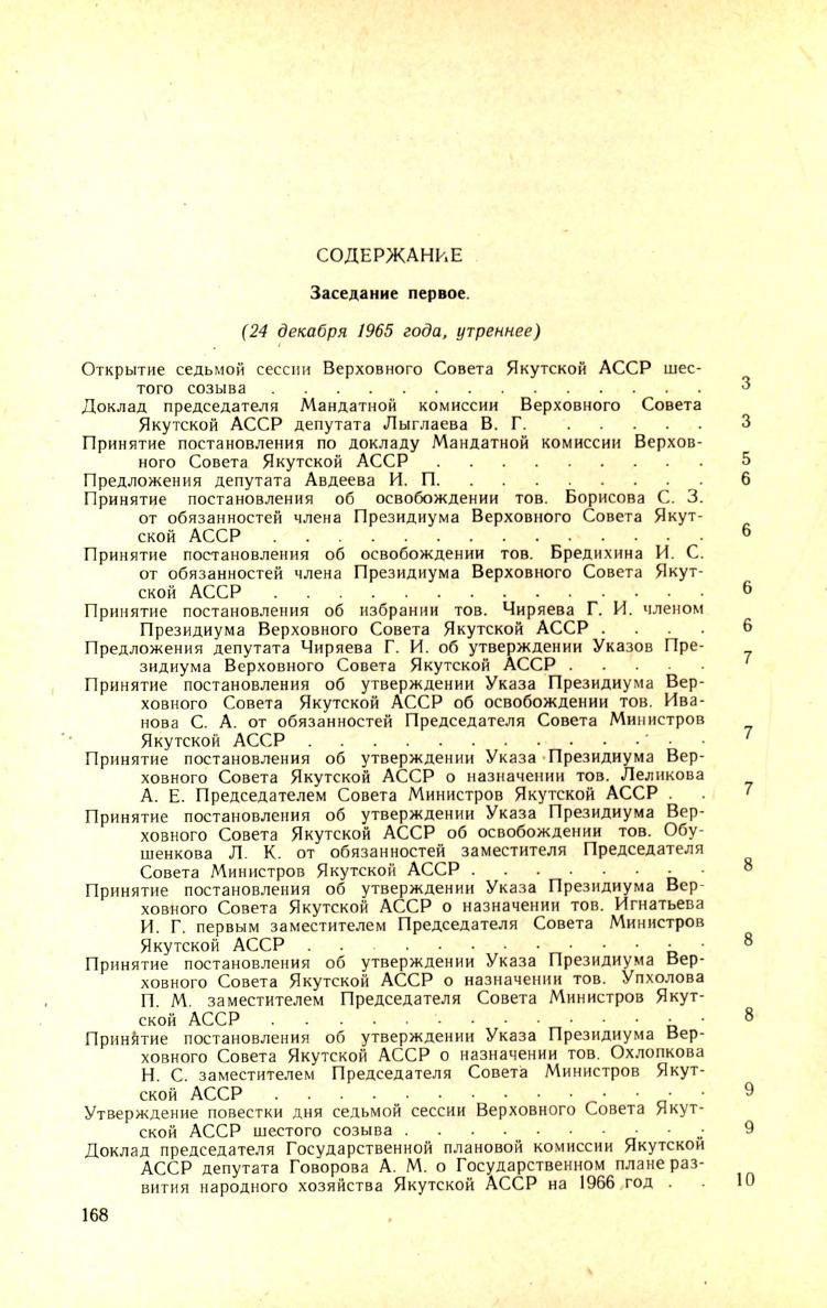 Заседания Верховного Совета Якутской АССР шестого созыва седьмая сессия, 24-25 декабря 1965 года: стенографический отчет