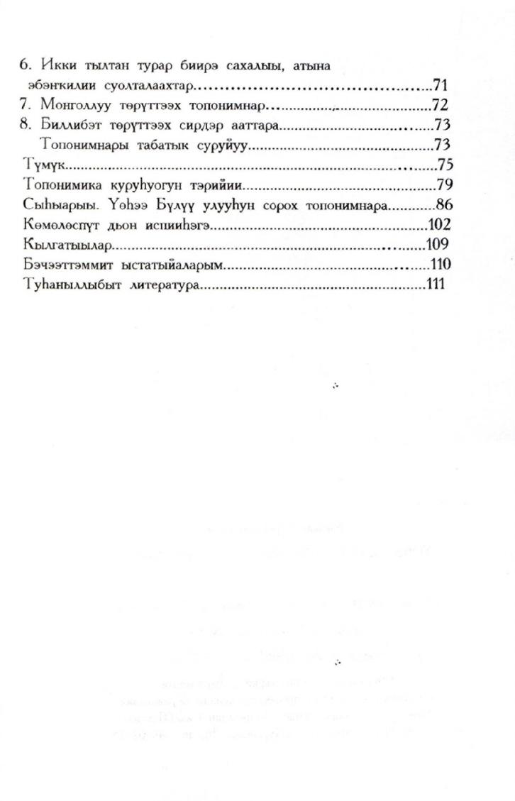 Үөһээ Бүлүү улууһун топонимиката / Уйбаан Ороһуунускай ; Саха Республикатын үөрэҕин министерствота, М. К. Аммосов аатынан Саха государственнай университета. - Дьокуускай : [и. с.], 2000. - 118 с.