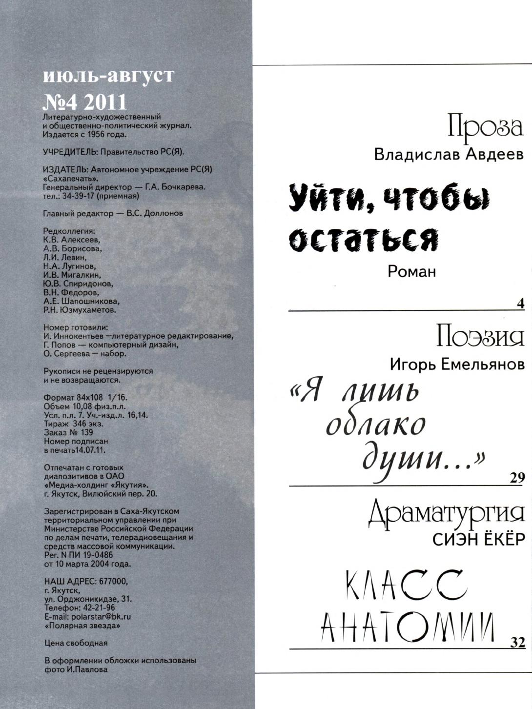 - 4. Полярная звезда: литературно-художественный и общественно-политический журнал, 2011, №5 (сентябрь-октябрь)