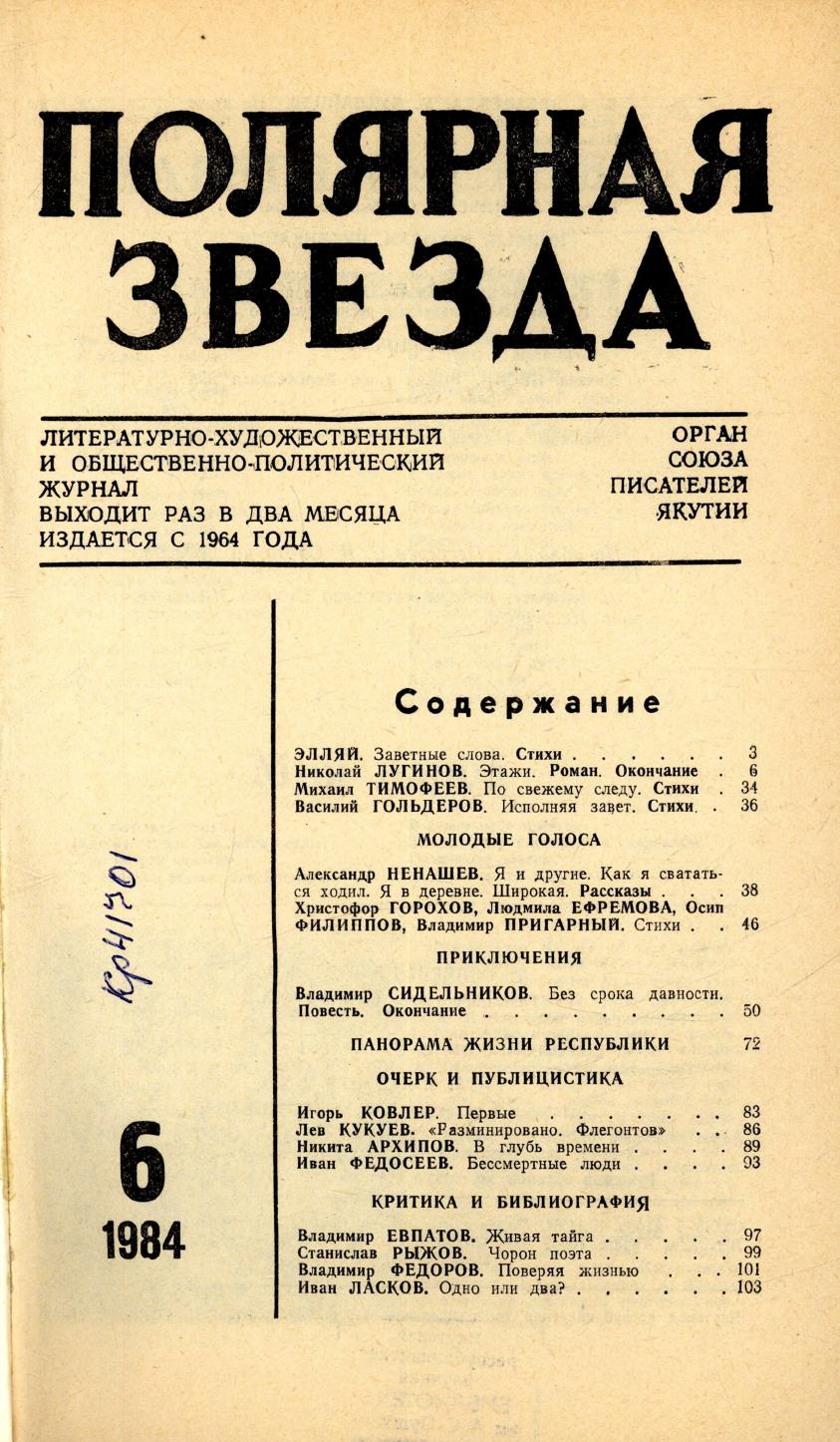 - Периодические издания Якутии (конец XIX – XXI вв.) > Журналы > Полярная звезда > 1984,