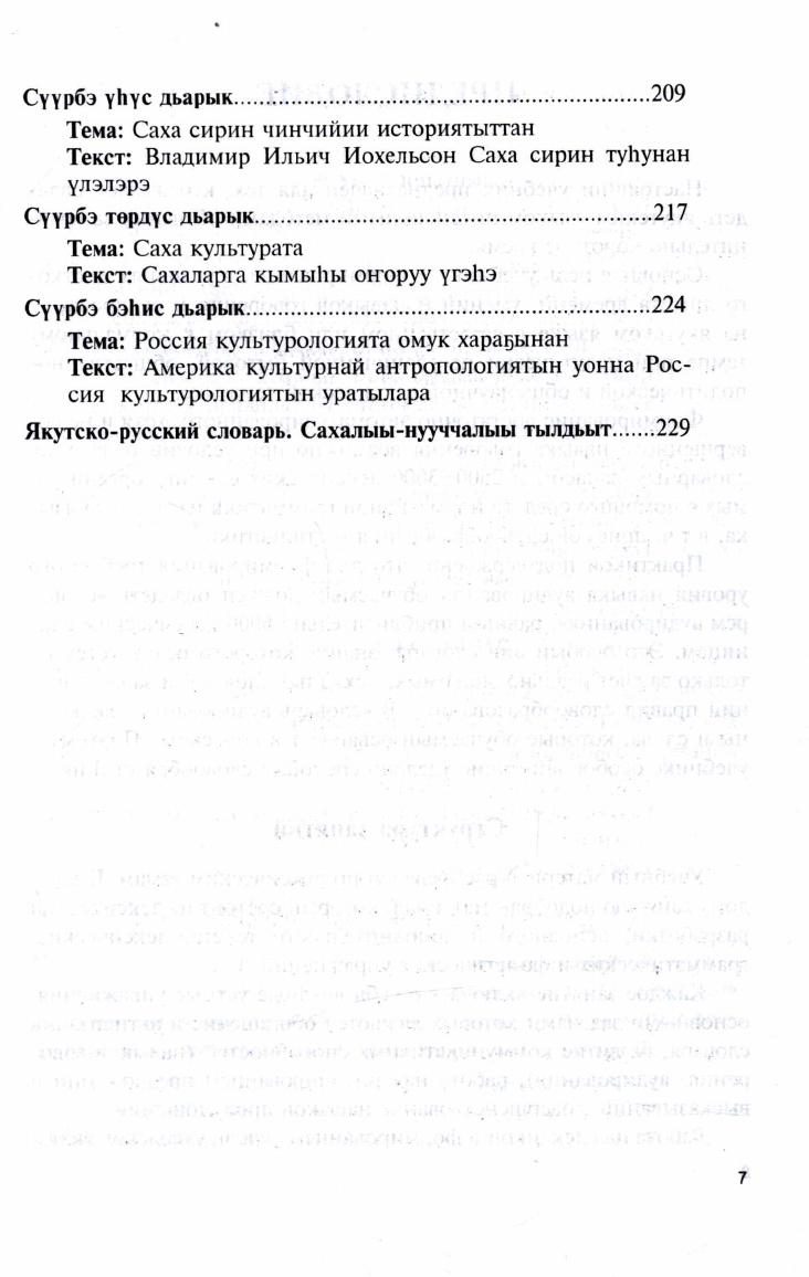 Самоучитель адресован широкому кругу изучающих разговорный якутский язык интенсивными методами. Учебный материал преподносится по лексическим темам. К каждому занятию подобран материал, который состоит из лексической разработки, основного и дополнительных текстов, грамматических сведений, лексических, грамматических и фонетических упражнений. Основными задачами занятий являются обогащение и активизация словаря, развитие коммуникативных способностей (навыков говорения, аудирования)