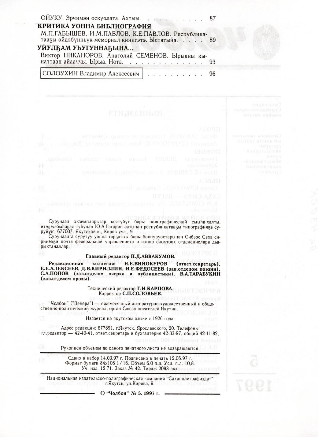 - 2. Чолбон: уус-уран литературнай уонна общественнай-политическай сурунаал, 1997, №2