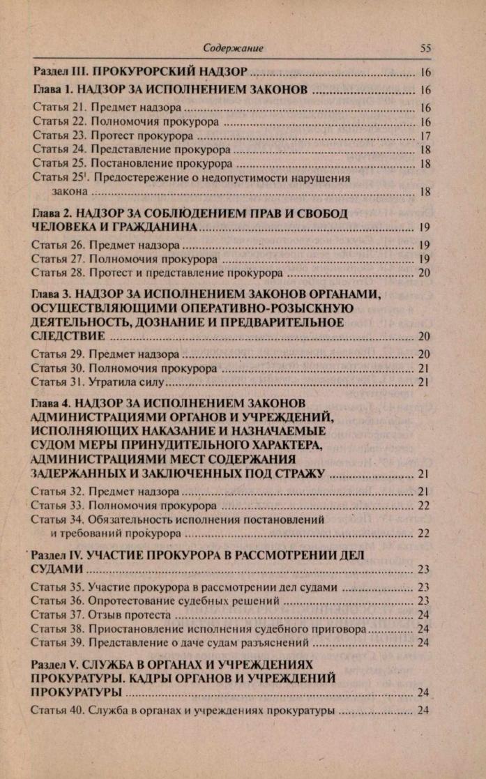 Законы. Федеральный закон "О прокуратуре Российской Федерации" : [от 17 января 1992 года N 2202-I : (в ред. Федеральных законов от 17.11. 1995 N 168-ФЗ ... от 30.12.2001 N 194-ФЗ)]. - Москва : Омега-Л, 2011. - 57 с.