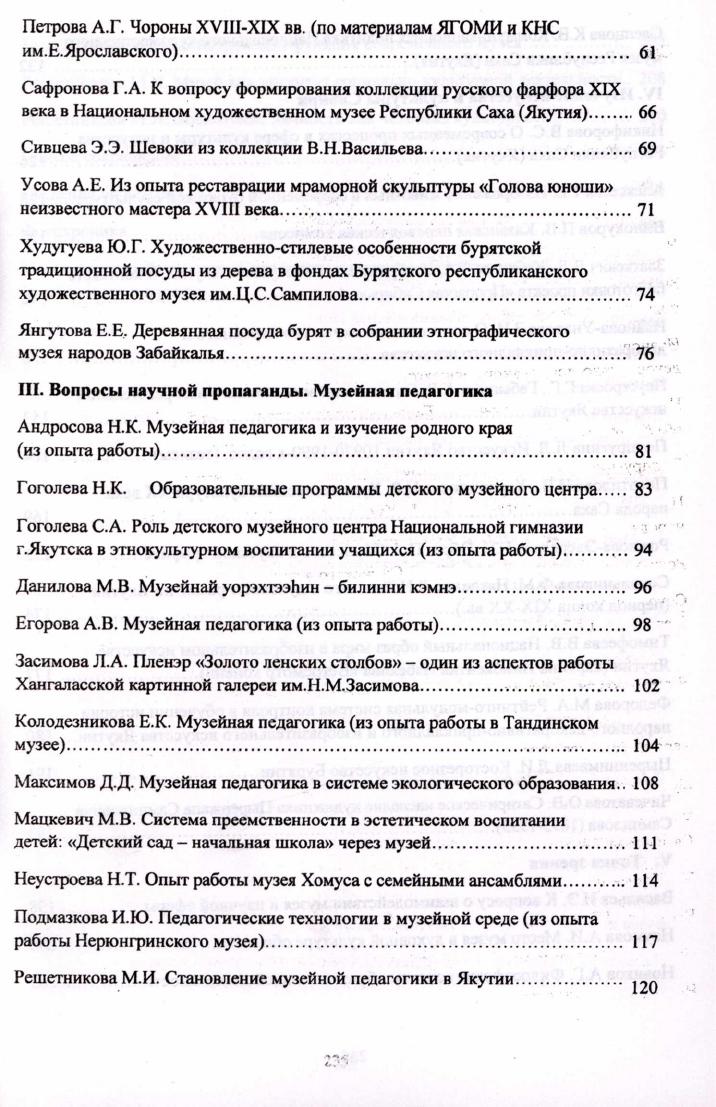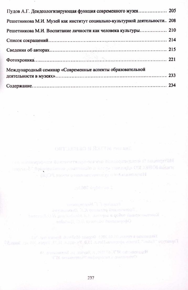 Диалог: музей и общество : материалы II международной научно-практической конференции под эгидой ЮНЕСКО "Диалог: музей и общество", посвященной 75-летию Национального художественного музея РС(Я), 2 октября 2003 г. / [научный редактор Г. Г. Неустроева]. - Якутск : Якутский государственный университет, 2005. - 237 с.