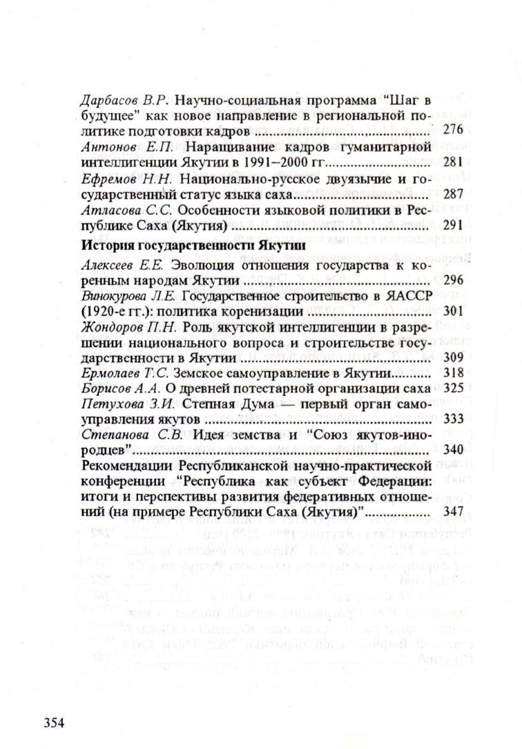 Республика как субъект Федерации: итоги и перспективы федеративных отношений / Академия наук РС(Я), Институт гуманитарных исследований ; Управление Министерства юстиции РФ по Республики Саха (Якутия) ; редколлегия: Е. М. Махаров (ответственный редактор) [и др.]. - Якутск : Издательство СО РАН, Якутский филиал, 2001. - 354 с. ISBN 5-8176-0022-6 : 45 р. - 300 экз.