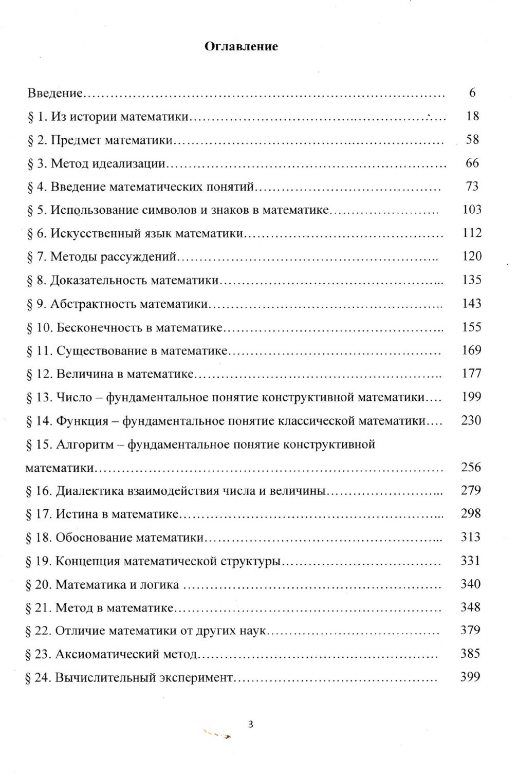 На вопрос о том, что собой представляет математика, ответ не может быть дан средствами самой математики. Ответ на поставленный вопрос может быть дан средствами и методами философии, что предполагает выяснение значения и места математического знания в общечеловеческой культуре, отношения этого вида знания к другим дисциплинам, к практической деятельности человека и к действительности. Рассмотрение содержания науки в конечном счете должно привести к уяснению специфических черт ее как таковой, к формулировке общих принципов, которые отличают ее от других видов знания, т.е. понять ее отличие от опытных наук, от логики, специфические особенности функционирования, закономерности развития, основные достижения и перспективы ее дальнейшего развития. Оно требует исследования истории, методологии, технологии различных