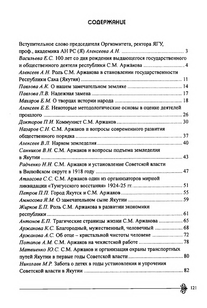 Сборник составлен на основе материалов республиканской научной конференции, проходившей в Москве (12 ноября 1999 г.), в Якутске (3 декабря 1999 г.) и посвященной 100-летию со дня рождения государственного и общественного деятеля Якутской АССР Степана Максимовича Аржакова. Одновременно использовались статьи, представленные и в последующие годы. Материалы сборника раскрывают жизнь и деятельность С. М. Аржакова как выдающегося государственного деятеля на посту наркома внутренних дел, земледелия ЯАССР, видного руководителя работы органов ВЧК в Якутии