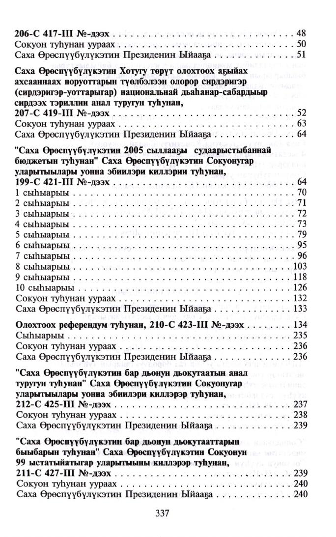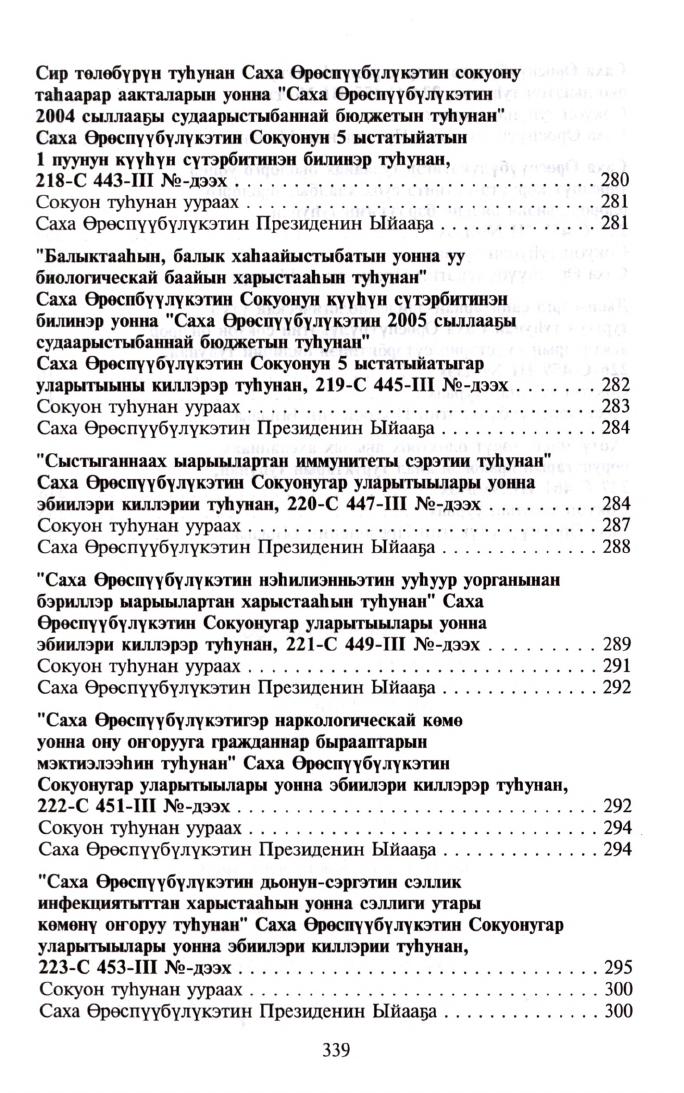 Саха Өрөспүүбүлүкэтин Ил Түмэнэ ... сылга ылыммыт сокуоннарын хомуурунньуга : / Российскай Федерация, Саха Өрөспүүбүлүкэтэ. - Дьокуускай : Сахаполиграфиздат, 2004-2006.